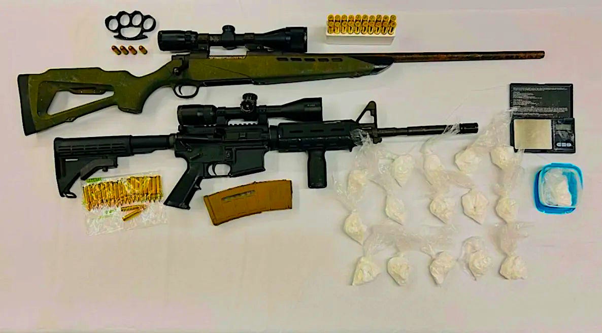HAUL: Colt Defense M4 Carbine, a Mossberg 4x4 rifle, multiple rounds of ammunition, brass knuckles, a one-pound of cocaine, and drug sales wares
