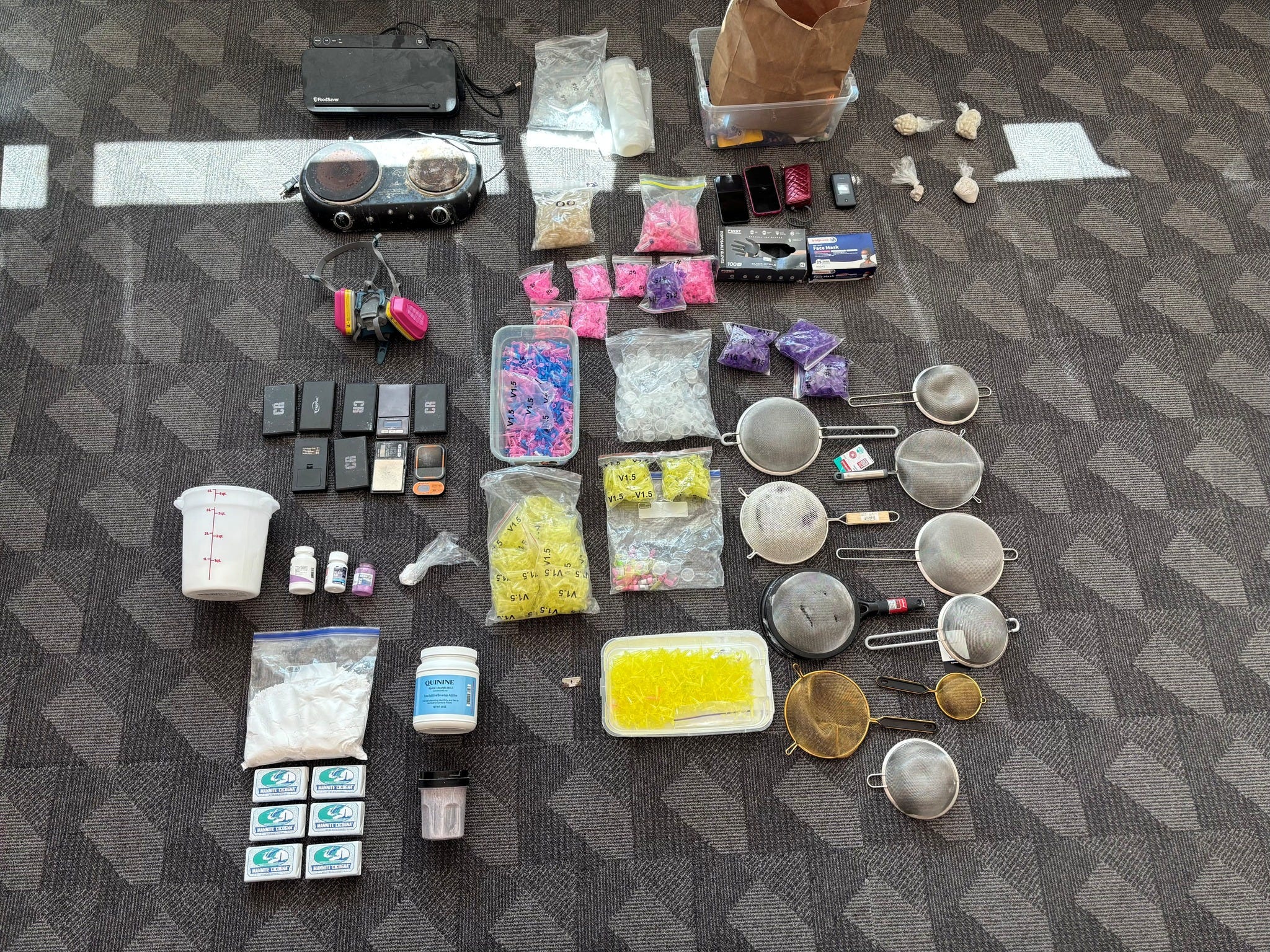 The total takeaway included 1,078 grams worth of a cocaine brick, 124 grams of fentanyl, 9.96 grams of crack, 68 grams of fentanyl/methamphetamine (Meth) mixture, as well as manufacturing and packaging materials.