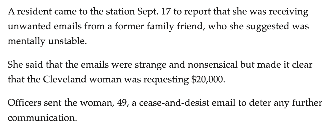 ▀ Unhinged Ex-Pal Demands $20K (Mayfield, OH)