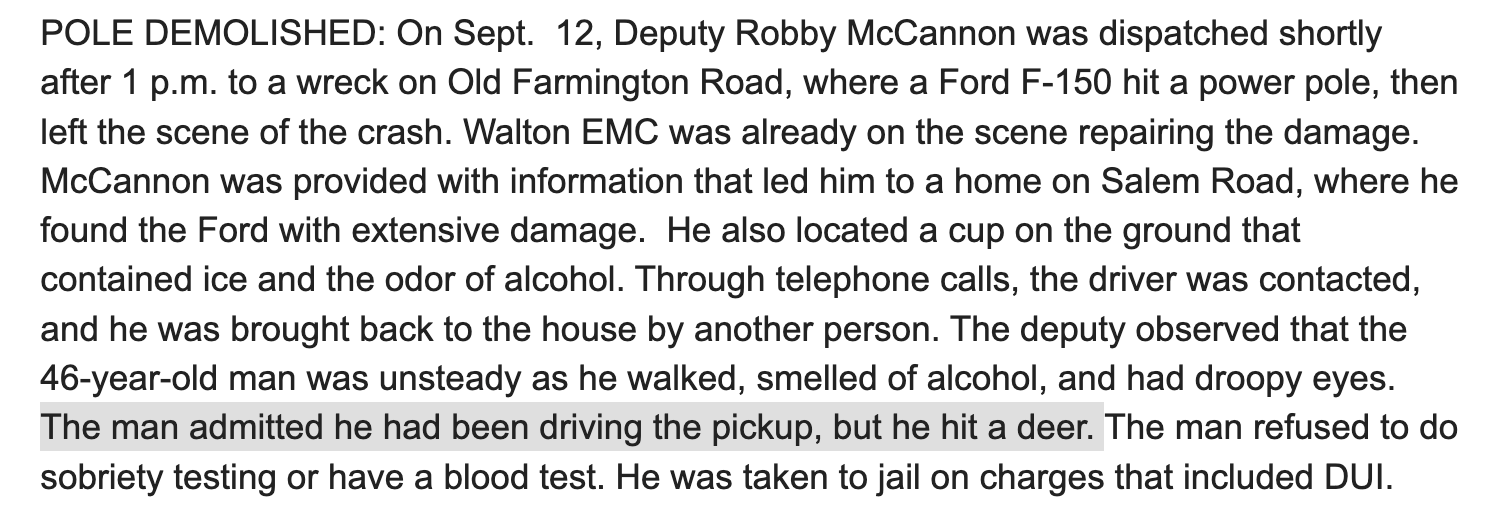 ▀ Driver Thought He Struck A Deer (Athens, GA)