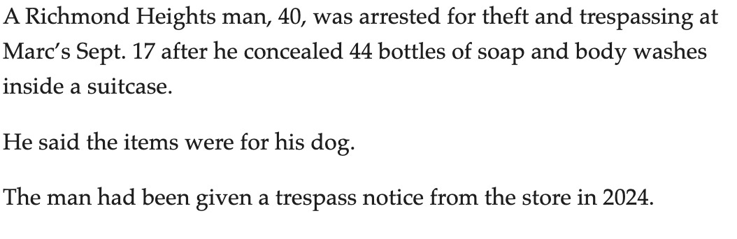 The suspect was also in possession of a bike, computer equipment, including a new Hewlet Packard laptop, several cellphones, and a bottle of whiskey that he had just bought at Walmart, according to the affidavit.