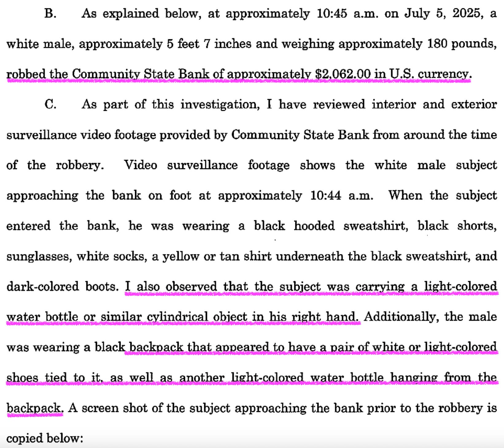 The teller was seen reading it and placing $2,062 (with two “bait bills” — with pre-recorded serial numbers) into the Stanley cup and returning it to the crook.