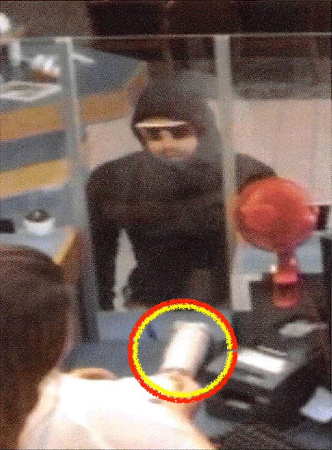 <> PULL QUOTE: ‘Put the $ in the cup, no dye pack, [sic] don’t call police.’