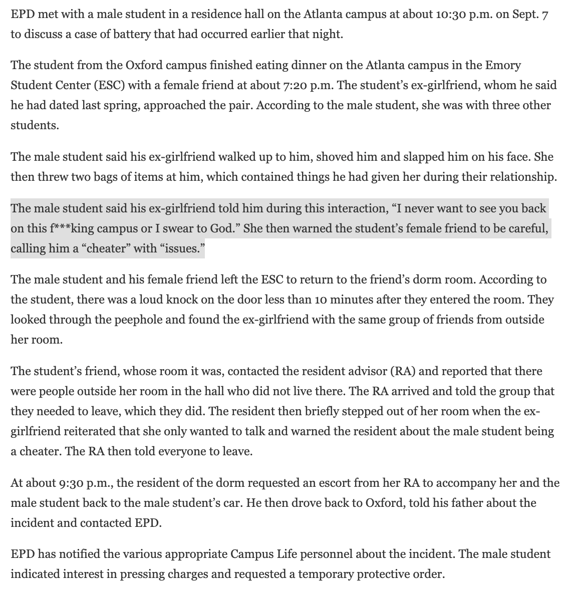 -Woman tells off ex-boyfriend on college campus before allegedly stalking him